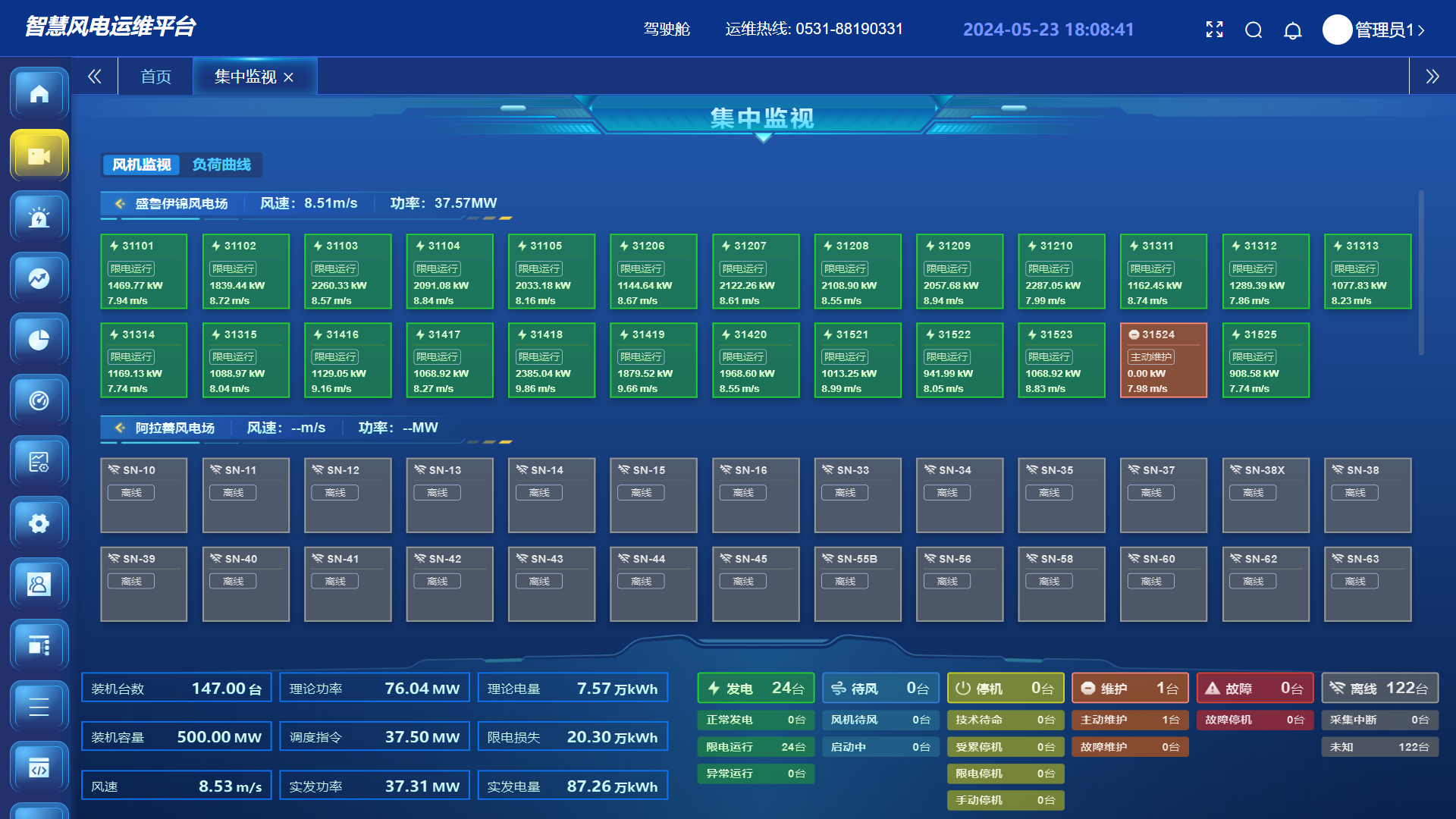 实现大规模新能源场站的统一运营管理,提高风电场安全运行水平,提高风电场的经济效益。