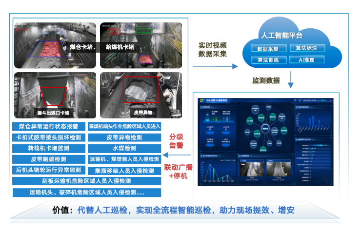 引入AI技术对煤仓状态进行实时监测与智能分析,实现煤仓事故的提前预警与预报,有效降低事故发生的可能性、缩减其影响时长,确保人员作业安全,提升整体作业效率。