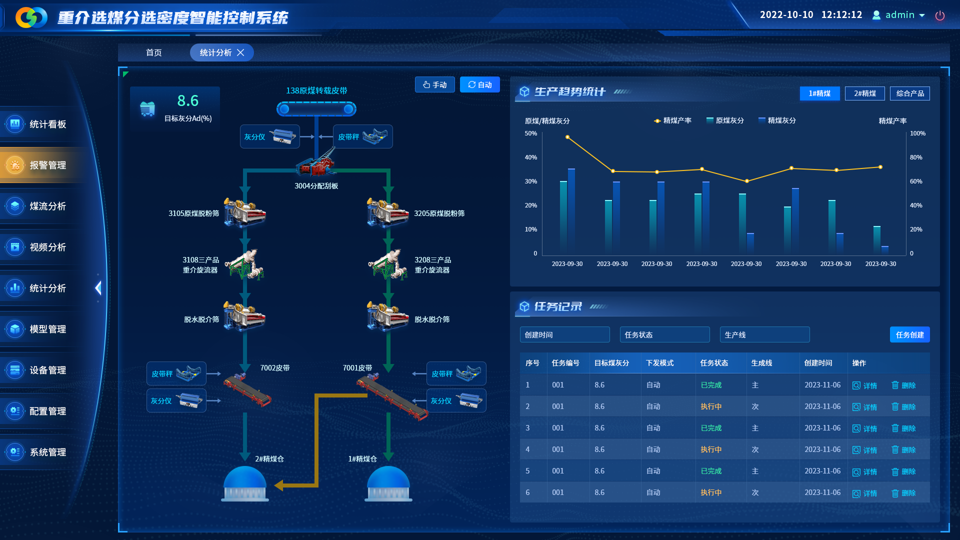 通过对入选煤质、工艺参数、生产数据的分析,构建重介选煤分选密度智能控制模型。利用算法的预测和自学习能力,实时分析预测出最优的重介分选密度进行控制,实现产品质量的精准控制和增产提效的目标。